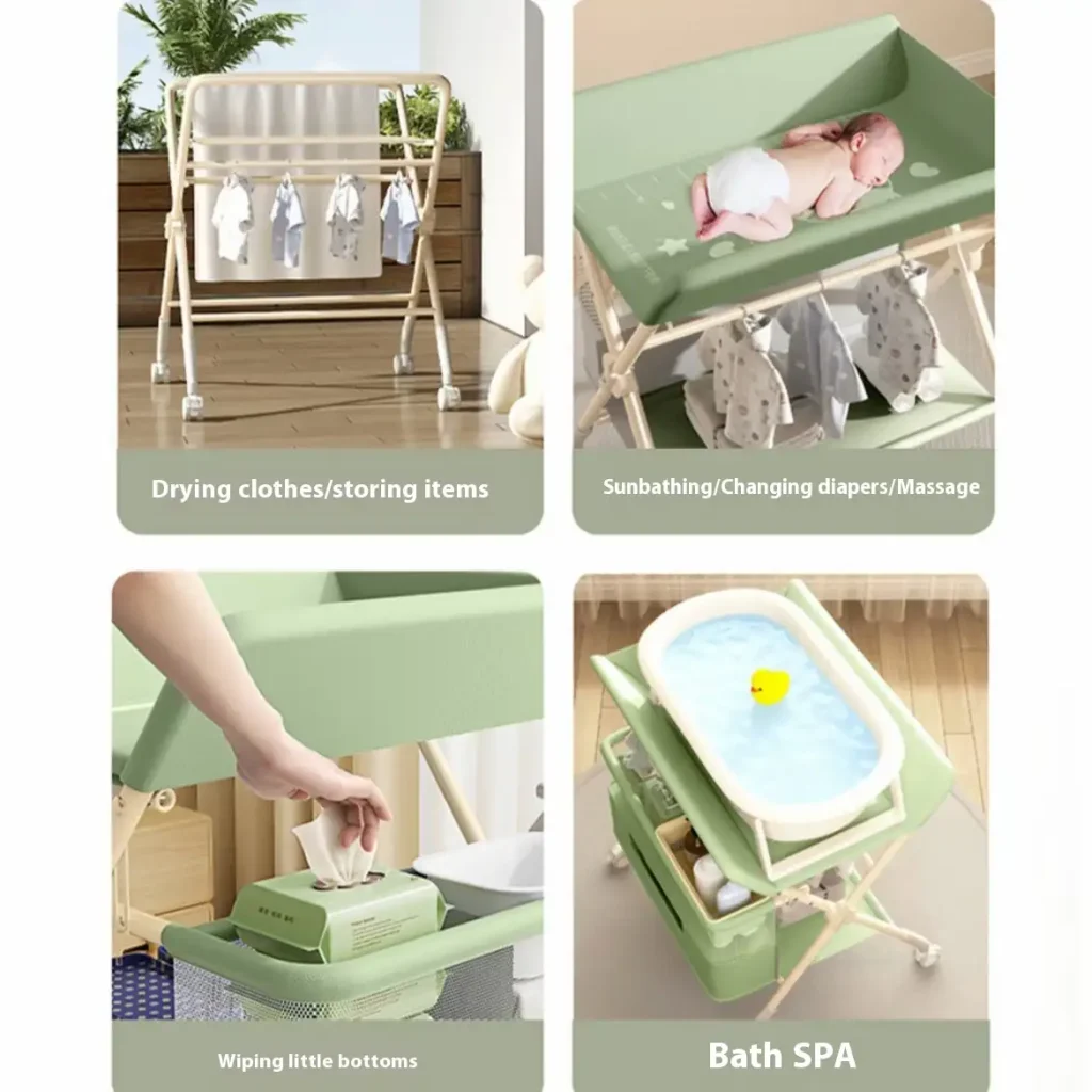 Supportive Postural Comfort Designed to support the physical health of the caregiver, the adjustable height settings help prevent the common “new parent backache.” By raising the baby to a natural waist height, it allows for a more ergonomic interaction, making nappy changes a bonding experience rather than a physical chore.