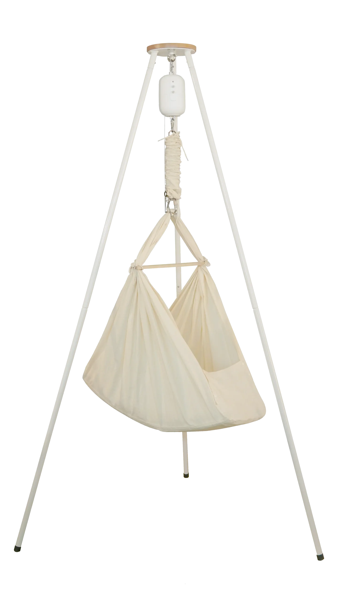- Minimalist Design: The elegant tripod stand and neutral-toned hammock fabric ensures this system fits perfectly into any contemporary or Scandi-style nursery. It’s a statement piece that doesn’t compromise on function.