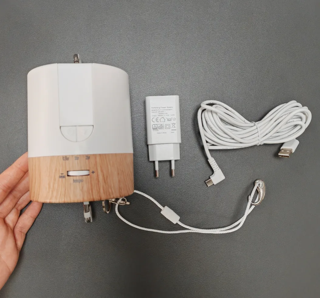 - Modern Aesthetics: The set features a clean, Scandinavian design, with a minimalist white tripod stand and motor with light wood accents, blending harmoniously into any home interior.