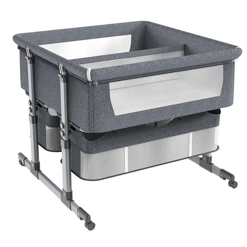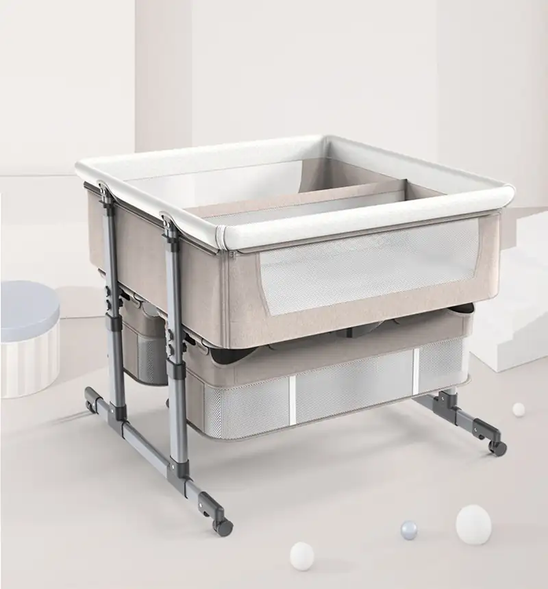 These Twin Cots UK are built with a reinforced chassis and premium linen fabrics that are both durable and stylish. Each side features independent height adjustment, making it compatible with high-frame beds or low-profile furniture. As a multi-functional baby bed, it bridges the gap between a standard crib and a luxury co-sleeper, ensuring your twins sleep soundly and safely every night.